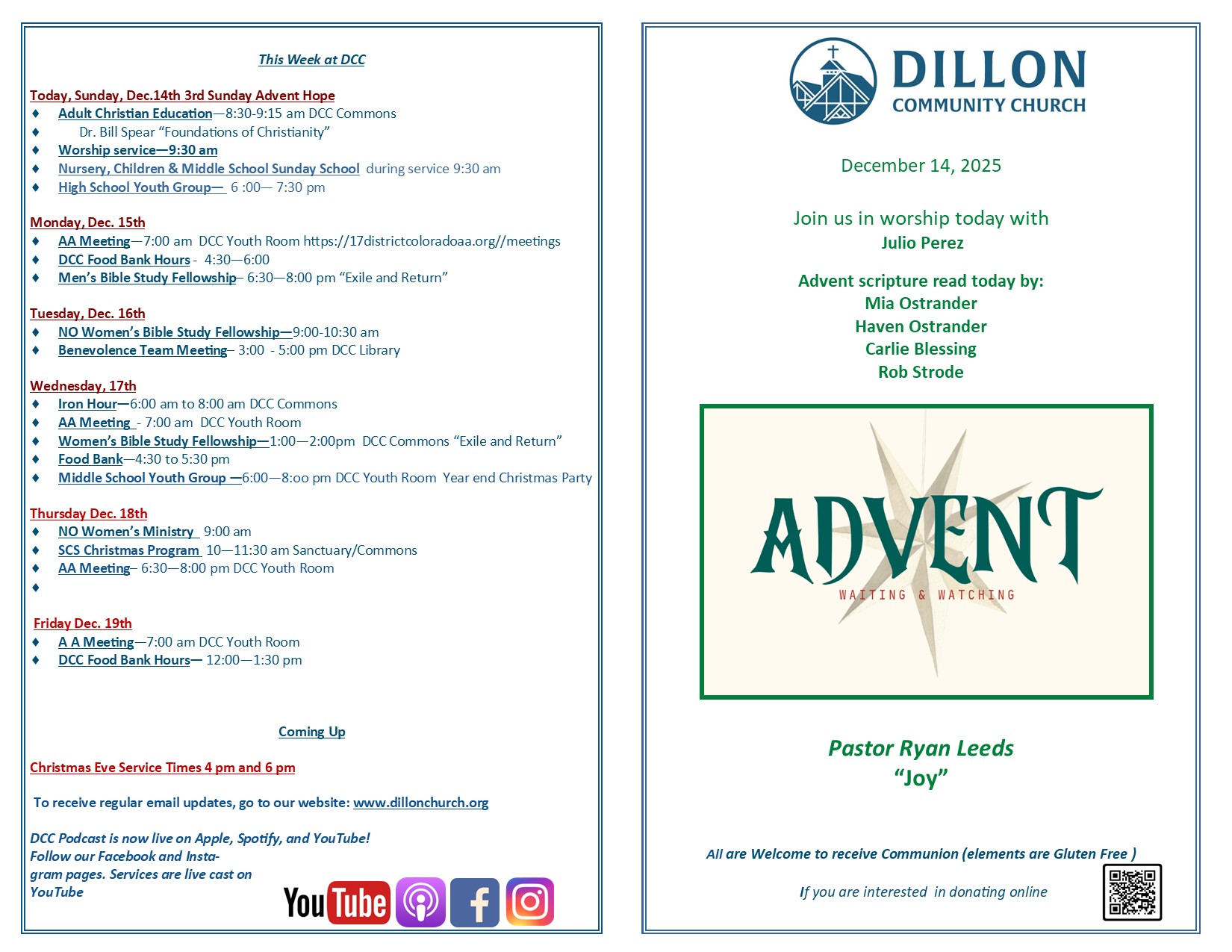 Dillon Community Church is a non-denominational church full of people from a variety of Christian backgrounds. We’re the kind of church that’s a home for locals, seasonal vacationers and visitors alike. Whether you call Summit County home or you’re looking for a church on your vacation, Dillon Community Church wants to invite you to be a part of what God’s doing in Summit County.
